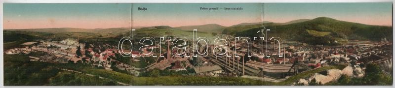Leírás: Resicabánya, Resicza, Recita, Resita; vasgyár. 3-részes kihajtható panorámalap. Otto Schwarcz kiadása / ironworks, iron factory. 3-tiled folding panoramacard