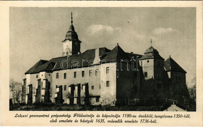 Lelesz, Leles (Újhely, Slovenské Nové Mesto); Premontrei prépostság földszintje és kápolnája az 1180-as évekből, temploma 1350-ből, első emelete és bástyái 1635, második emelete 1736-ból / abbey (EK)
