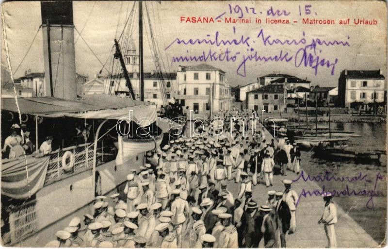 1912 Fazana, Fasana; Marinai in licenza / Matrosen auf Urlaub / Osztrá... https://www.darabanth.com/hu/427-Gyorsarveres/427.0/Kepeslapok/Hadihajo~1000024/1912-Fazana-Fasana-Marinai-in-licenza-Matrosen-auf-Urlaub-Osztrak-Magyar-Haditengereszet-mat~II2734386