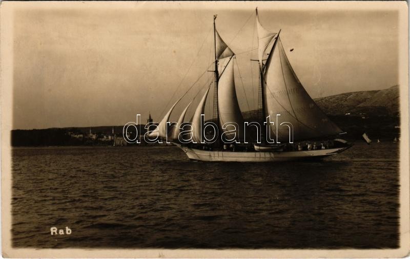 1930 Rab, Arbe; turista vitorlás. A levél írója is az egyik utas / tou... https://www.darabanth.com/hu/427-Gyorsarveres/427.0/Kepeslapok/Horvatorszag~1000008/1930-Rab-Arbe-turista-vitorlas-A-level-iroja-is-az-egyik-utas-tourist-sailing-ship-photo~II2732423