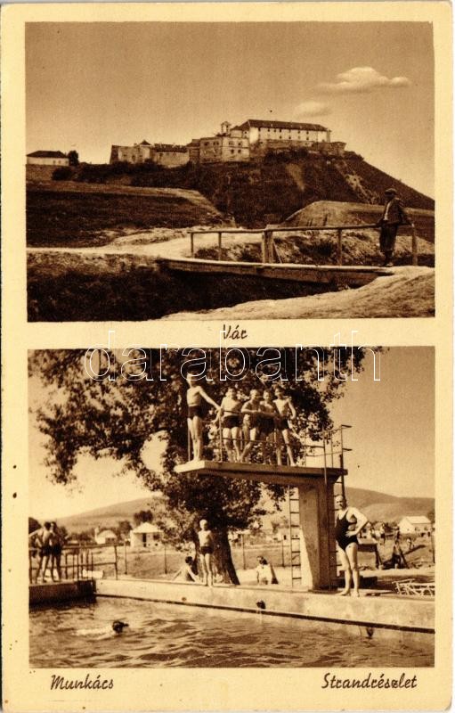Leírás: Munkács, Mukacheve, Mukacevo; Vár, strand / castle, swimming pool