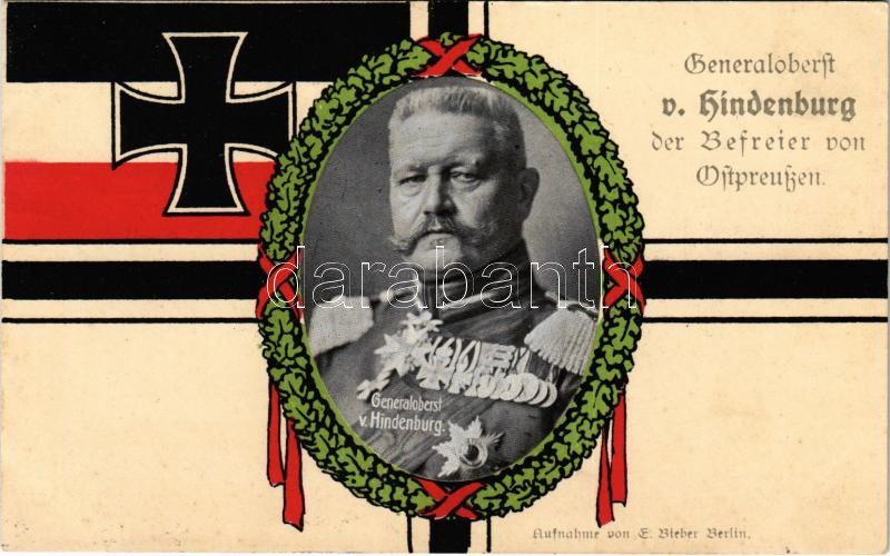 1914 Generaloberst v. Hindenburg der Befreier von Ostpreußen. Kriegspostkarte / WWI German military art postcard. Field Marshal Hindenburg, patriotic propaganda