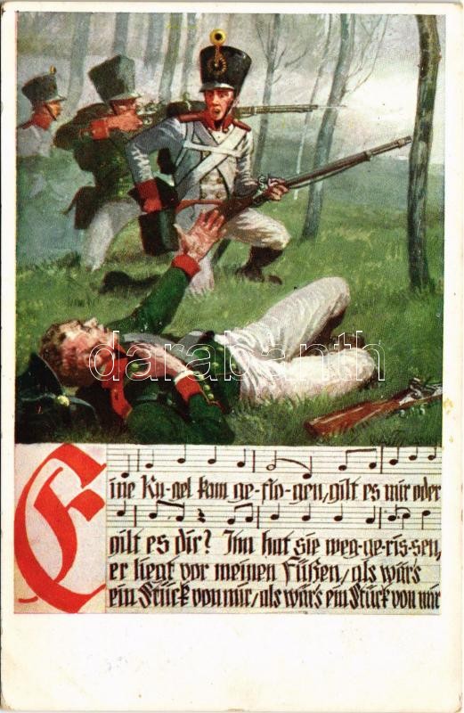 Eine Kugel kam geflogen... / WWI Austro-Hungarian K.u.K. military charity fund art postcard. Offizielle Karte für Rotes Kreuz, Kriegsfürsorgeamt Kriegshilfsbüro Nr. 54A. s: R. Assmann (ragasztónyom / glue mark)