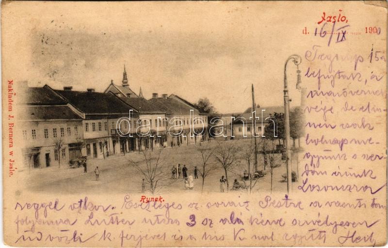 1900 Jaslo, Rynek / square, shops, market (EK) https://www.darabanth.com/hu/427-Gyorsarveres/427.0/Kepeslapok/Lengyelorszag~1000079/1900-Jaslo-Rynek-square-shops-market-EK~II2733511