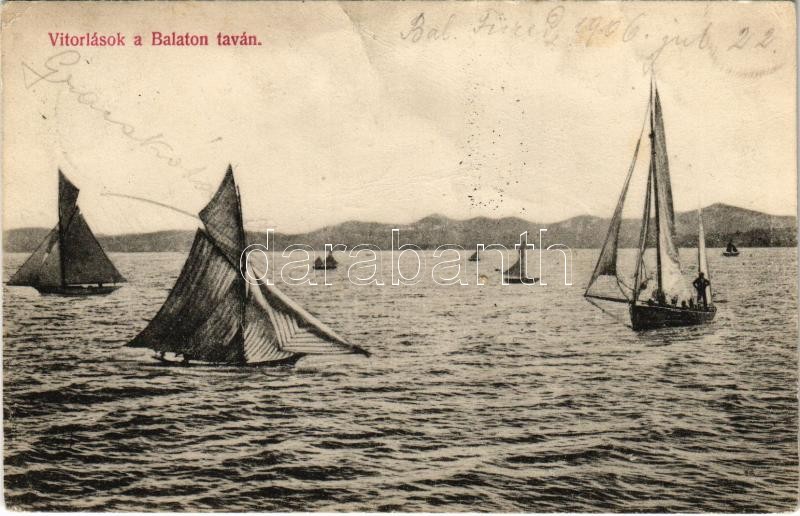 1906 Balaton, vitorlások a Balaton taván. D.K. Bp. 1906.-1059. (fa) https://www.darabanth.com/hu/427-Gyorsarveres/427.0/Kepeslapok/Magyarorszag~1000004/1906-Balaton-vitorlasok-a-Balaton-tavan-DK-Bp-1906-1059-fa~II2734880