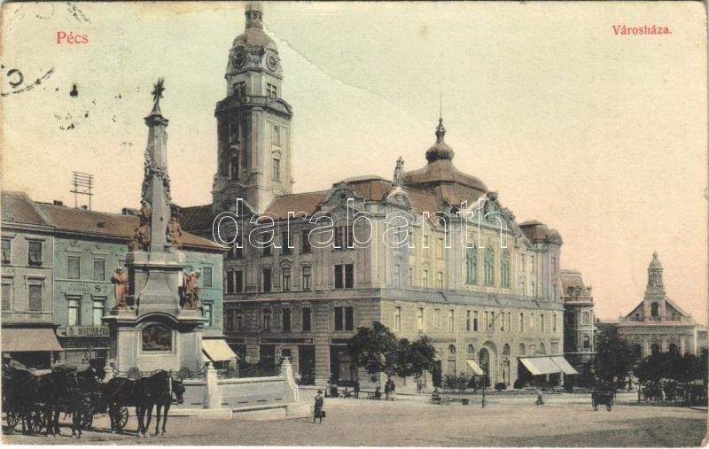 1912 Pécs, városház, Weidinger M. utóda üzlete (EK) https://www.darabanth.com/hu/427-Gyorsarveres/427.0/Kepeslapok/Magyarorszag~1000004/1912-Pecs-varoshaz-Weidinger-M-utoda-uzlete-EK~II2481497