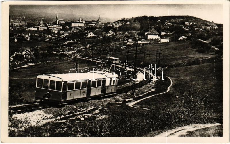 Leírás: 1947 Budapest XII. Svábhegy, Fogaskerekű villamos vasút, látkép a Budai hegyekről