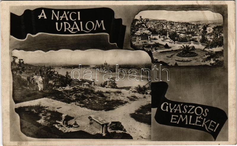Budapest. A náci uralom gyászos emlékei. Újjáépítjük Magyarországot! Magyar Újjáépítési Minisztérium engedélyével a Magyar Központi Híradó Rt. propaganda lapja a lerombolt Várkerttel (gyűrődések / creases)