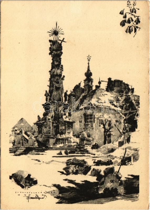 Budapest I. Szentháromság tér a háború után s: Pfannl Egon (EK) https://www.darabanth.com/hu/427-Gyorsarveres/427.0/Kepeslapok/Magyarorszag~1000004/Budapest-I-Szentharomsag-ter-a-haboru-utan-s-Pfannl-Egon-EK~II2733456
