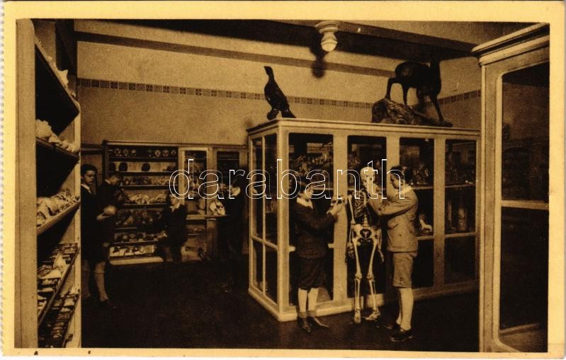 Leírás: Budapest V. Kegyes-tanítórendi gimnázium, természetrajzi szertár, belső, csontváz. Rigler r.-t. kiadása (képeslapfüzetből / from postcard booklet)