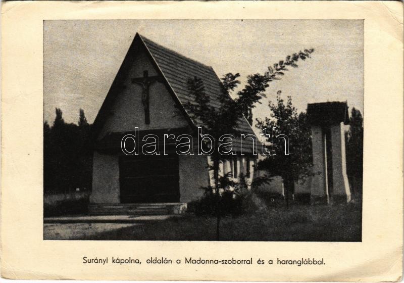 Pócsmegyer, Surányi kápolna, oldalán a Madonna szoborral és haranglább... https://www.darabanth.com/hu/427-Gyorsarveres/427.0/Kepeslapok/Magyarorszag~1000004/Pocsmegyer-Suranyi-kapolna-oldalan-a-Madonna-szoborral-es-haranglabbal-EK~II2732252
