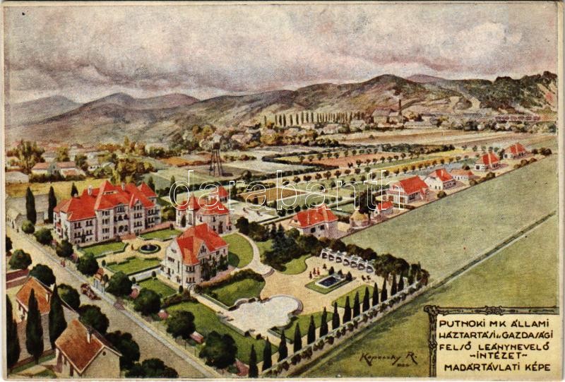 Leírás: Putnok, M. kir. állami háztartási és gazdasági felső leánynevelő intézet madártávlati képe s: Kopeczky Raoul