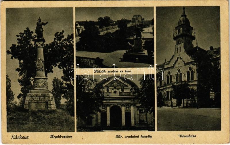 Leírás: Ráckeve, Árpád szobor, Hősök szobra és tere, Kir. uradalmi kastély, Városháza (EK)