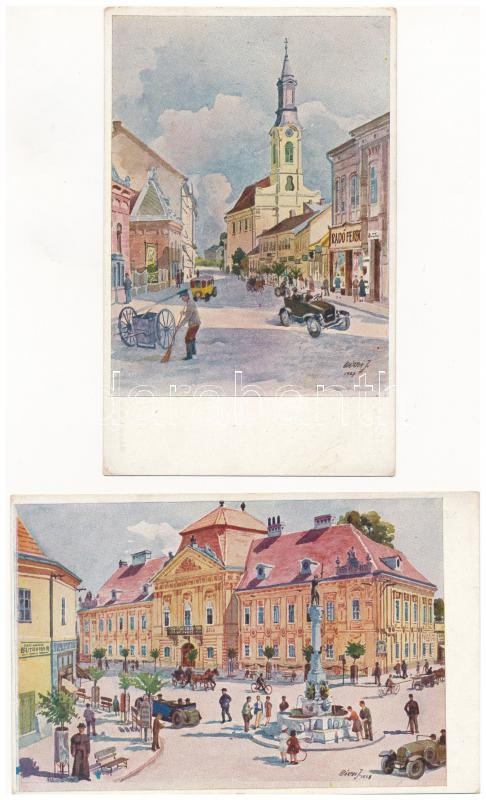 Leírás: Székesfehérvár - 2 db RÉGI művészlap Márton J. szignóval / 2 pre-1945 art postcards signed by J. Márton