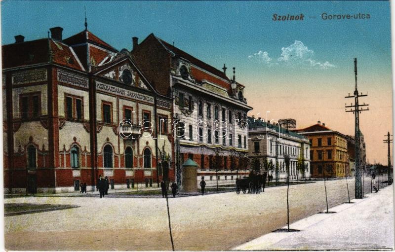 Szolnok, Gorove utca, Mezőgazdasági takarékpénztár, Első magyar általá... https://www.darabanth.com/hu/427-Gyorsarveres/427.0/Kepeslapok/Magyarorszag~1000004/Szolnok-Gorove-utca-Mezogazdasagi-takarekpenztar-Elso-magyar-altalanos-biztosito-tarsa~II2724014
