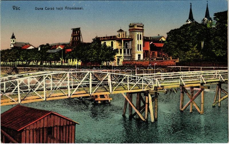 Vác, Duna korzó, hajóállomás. B. M. és Társa kiadása https://www.darabanth.com/hu/427-Gyorsarveres/427.0/Kepeslapok/Magyarorszag~1000004/Vac-Duna-korzo-hajoallomas-B-M-es-Tarsa-kiadasa~II2724034