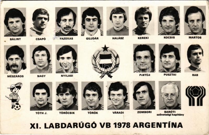 1978 Argentína, XI. Labdarúgó Világbajnokság, Magyar válogatott csapata. Képzőművészeti Alap Kiadóvállalat / Hungary national football team of the 1978 FIFA World Cup in Argentina (EB)