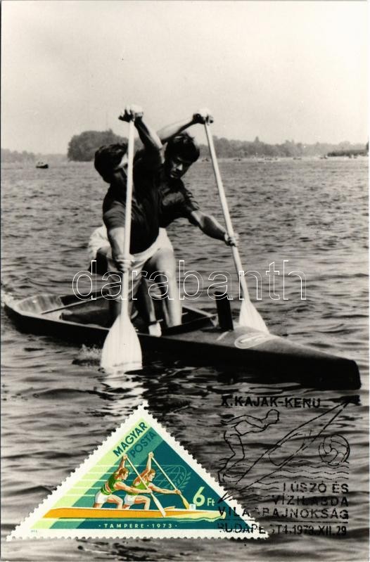 Férfi kenu kettes. Képzőművészeti Alap Kiadóvállalat / Men's double canoe + "X. Kajak-Kenu I. Úszó- és Vízilabda Világbajnokság Budapest 1973. XII. 29." So. Stpl.