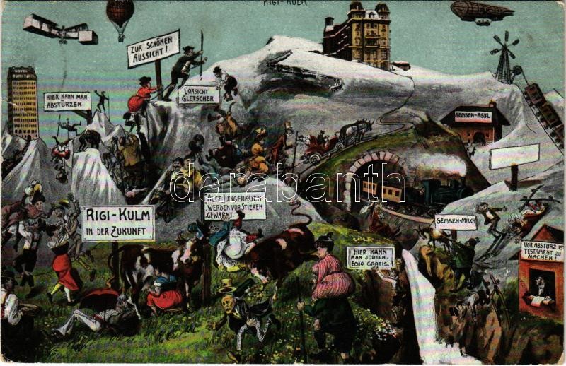 Rigi-Kulm in der Zukunft, humorous montage. K. Essig https://www.darabanth.com/hu/427-Gyorsarveres/427.0/Kepeslapok/Svajc~1000091/Rigi-Kulm-in-der-Zukunft-humorous-montage-K-Essig~II2732988
