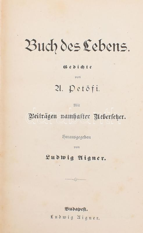 Buch des Lebens. Gedichte von Petőfi. Bp., Ludwig Aigner. Kiadói egész... https://www.darabanth.com/hu/427-Gyorsarveres/427.0/Konyvek/Konyvek-Egyeb-ritkasagok~1500026/Buch-des-Lebens-Gedichte-von-Petofi-Bp-Ludwig-Aigner-Kiadoi-egeszvaszon-kotes-gerinc-se~II2733724