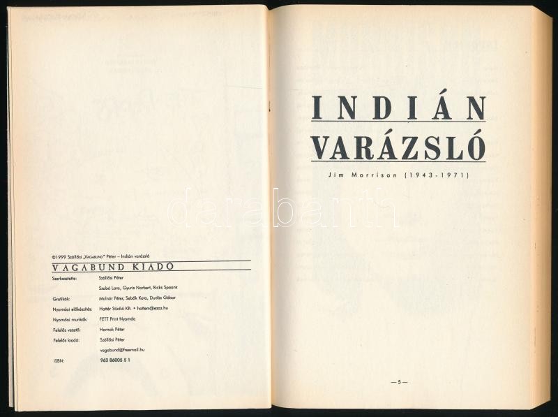 Leírás: Indián varázsló. Jim Morrison (1943-1971.) Szerk.: Szőllősi Péter. hn., 1999, Vagabund. Kiadói papírkötés.