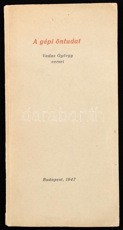 Vadas György: A gépi öntudat. Bp., 1947., (Gyoma, Kner Izidor-ny.) Kia... https://www.darabanth.com/hu/427-Gyorsarveres/427.0/Konyvek/Konyvek-Egyeb-ritkasagok~1500026/Vadas-Gyorgy-A-gepi-ontudat-Bp-1947-Gyoma-Kner-Izidor-ny-Kiadoi-papirkotes-felvag~II2735738