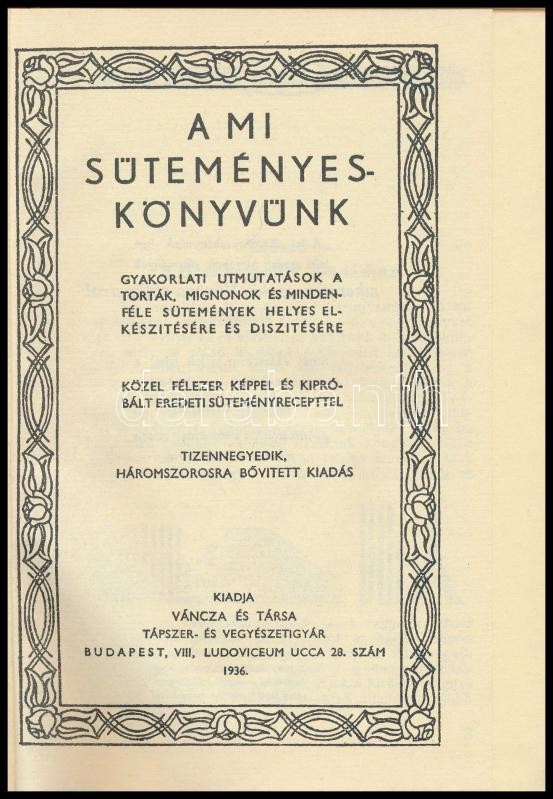 Váncza József: A mi süteményeskönyvünk. Váncza sütőpor receptkönyve. Bp., 1986, Közgazdasági és Jogi Könyvkiadó. Reprint kiadás. Kiadói egészvászon-kötés, jó állapotban.
