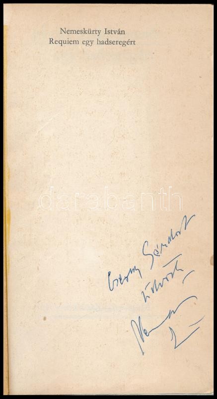 Nemeskürty István: Requiem egy hadseregért. DEDIKÁLT példány! Magvető ... https://www.darabanth.com/hu/427-Gyorsarveres/427.0/Konyvek/Konyvek-Militaria-Katonasag~1500012/Nemeskurty-Istvan-Requiem-egy-hadseregert-DEDIKALT-peldany-Magveto-Zsebkonyvtar-Bp-19~II2724666