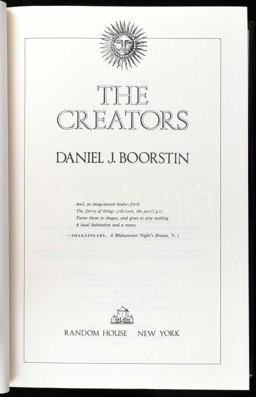 Daniel J. Boorstin: The creators. The history of the imagination. New York,1992,Random House. Angol nyelven. Kiadói félvászon-kötés, kiadói papír védőborítóban.