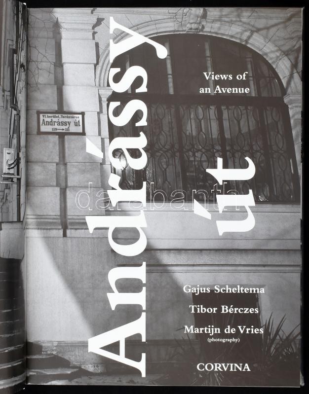 Gajus Scheltema - Tibor Bérczes - Martijn de Vries: Andrássy út. Views of an Avenue. A szerzők, Gajus Scheltema (Hollandia budapesti nagykövete), Bérczes Tibor (fordító) és Martij de Vries (fotóművész) által ALÁÍRT példány. Bp., 2017., Corvina. Rendkívül gazdag fotóanyaggal illusztrált. Angol nyelven. Kiadói kartonált papírkötés, kiadói papír védőborítóban, a borító modern professzionális átlátszó védőfóliában, jó állapotban.
