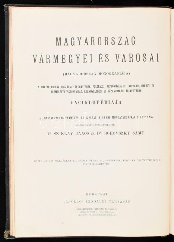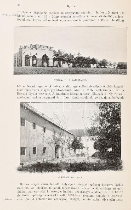 Magyarország vármegyéi és városai. Főszerk.: Borovszky Samu. 4. kötet. Nyitra Vármegye. Bp., 1899, Apollo Irodalmi Társaság. Gazdagon díszített, festett, aranyozott vászonkötésben. A borítótábla, kopottas, gerincen kis sérülés, egy kihajtható melléklet szakadt, néhány lap foltos
