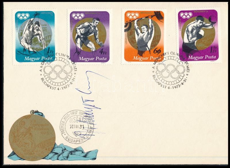 Leírás: 1972 München olimpia aranyérmeseinek Hegedűs Csaba (1948-) aláírása Müncheni olimpiai FDC-n