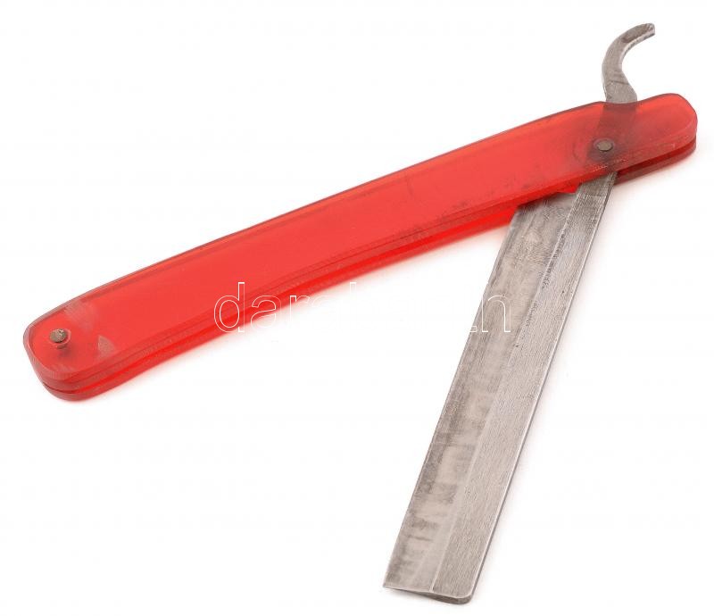 Nagyméretű, régebbi fém borotva, áttetsző vörös bakelit nyéllel, kissé... https://www.darabanth.com/hu/427-Gyorsarveres/427.0/Mutargy-papirregiseg-egyeb/Bolhapiac~500013/Nagymeretu-regebbi-fem-borotva-attetszo-voros-bakelit-nyellel-kisse-kopottas-h-22-cm~II2731874