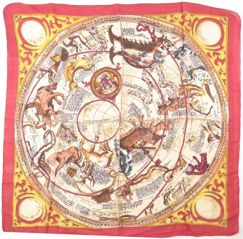 Vörös szegélyű kendő horoszkópos mintával, kb. 90x86 cm https://www.darabanth.com/hu/427-Gyorsarveres/427.0/Mutargy-papirregiseg-egyeb/Bolhapiac~500013/Voros-szegelyu-kendo-horoszkopos-mintaval-kb-90x86-cm~II2724836