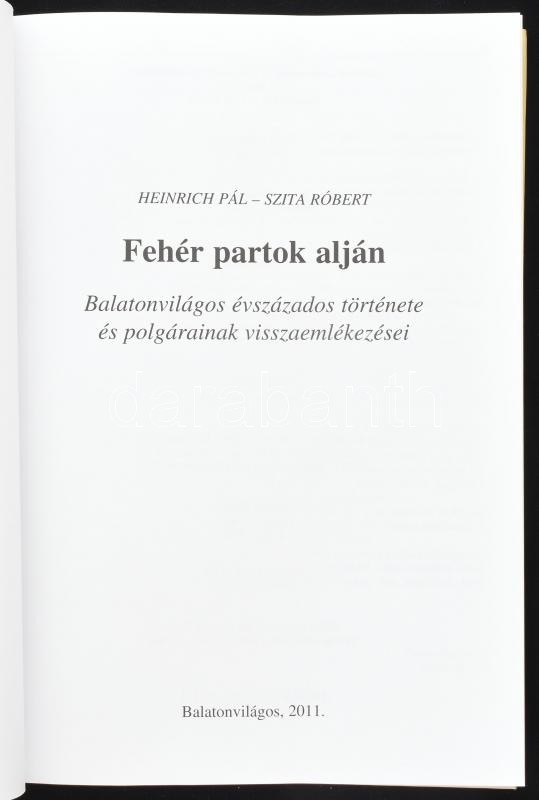 Heinrich Pál-Szita Róbert: Fehér partok alján - Balatonvilágos évszázados története és polgárainak visszaemlékezései. Balatonvilágos, 2011, Balatonvilágos Jövőjéért Közalapítvány-Balatonvilágos Község Önkormányzata. Kiadói kartonált papírkötés. Megjelent 1500 példányban.