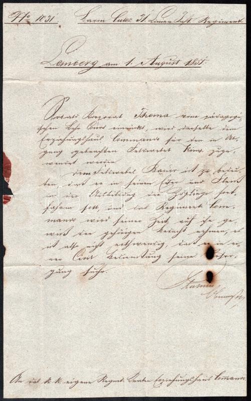 Leírás: 1851 Viaszpecsétes katonai levél Lembergből küldve