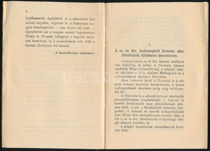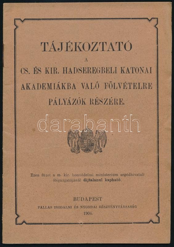 Leírás: 1904 Cs. és kir hadseregbeli katonai akadémiákba való fölvételre pályázók részére. Bp., 1904. Palllas. 30p. Fűzve, kiadói borítóval
