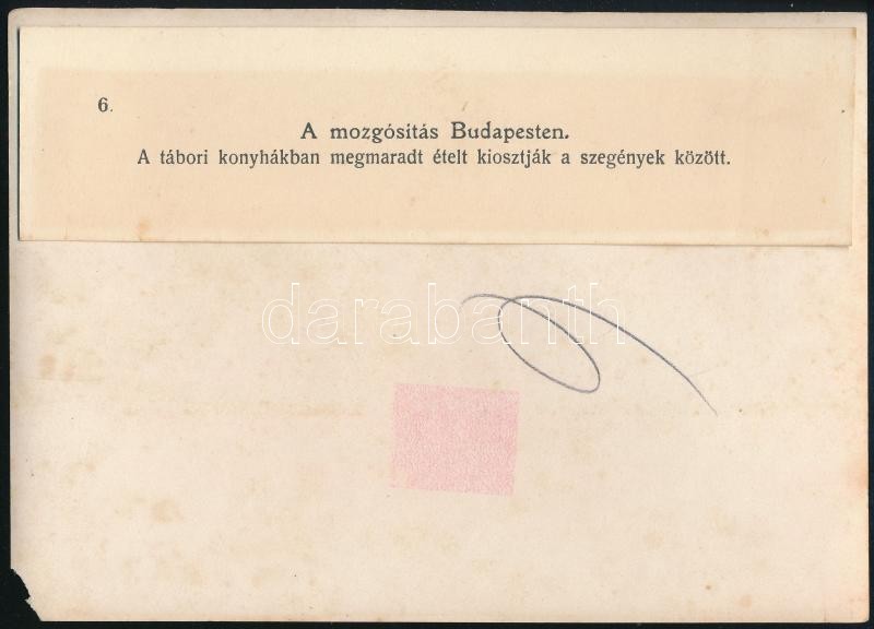 cca 1914-1918 Mozgósítás Budapesten, a tábori konyhákban megmaradt éte... https://www.darabanth.com/hu/427-Gyorsarveres/427.0/Mutargy-papirregiseg-egyeb/Militaria~500029/cca-1914-1918-Mozgositas-Budapesten-a-tabori-konyhakban-megmaradt-etelek-szetosztasa-hato~II2731510