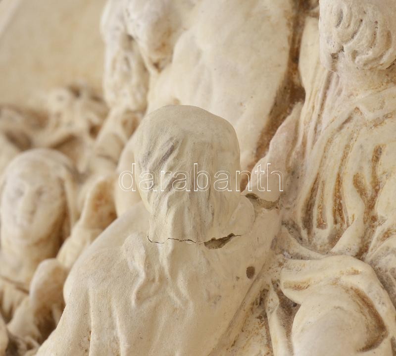 Leírás: Rubens Krisztus levétele antik dombormű gipsz őrlemény, vékony ezüst keretben. Asztali dísz. 24 cm kitámasztóval
