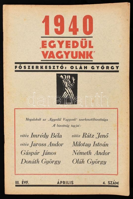 szép állapotban - https://www.darabanth.com/hu/427-Gyorsarveres/427.0/Mutargy-papirregiseg-egyeb/Nyomtatvanyok~1500003/1941-Egyedul-vagyunk-1940-IIIevf-4szam--szep-allapotban-~II2734821