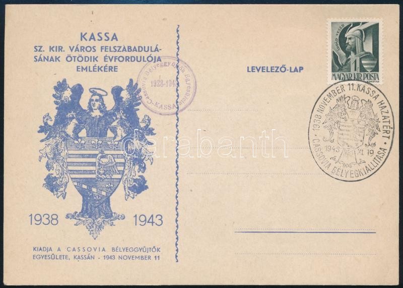 1943 Kassa felszabadulásának 5. évfordulója emlékére kiadott levelezől... https://www.darabanth.com/hu/427-Gyorsarveres/427.0/Mutargy-papirregiseg-egyeb/Nyomtatvanyok~1500003/1943-Kassa-felszabadulasanak-5-evforduloja-emlekere-kiadott-levelezolap~II2735944