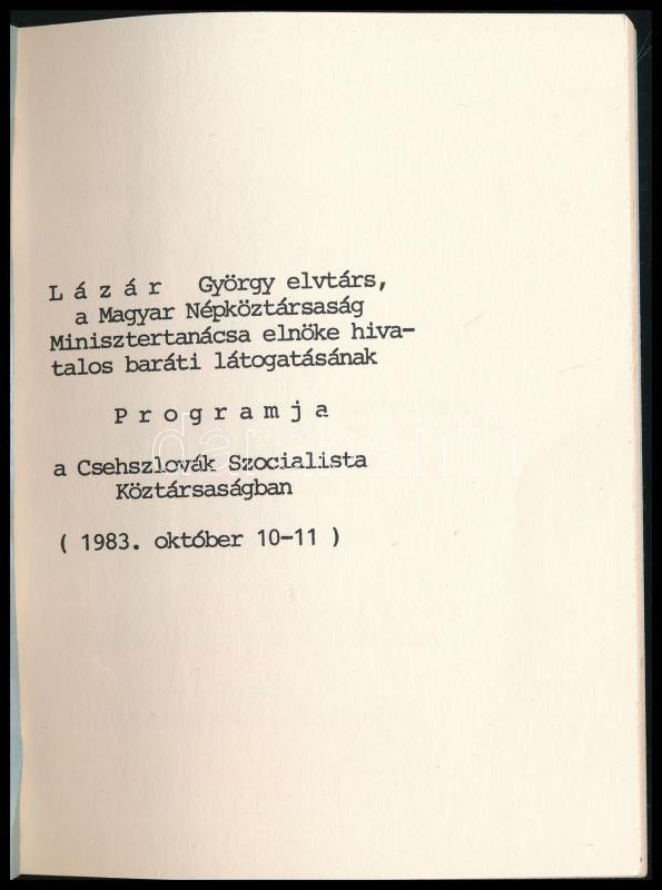 1983 Lázár György elvtárs, Magyar Népköztársaság Minisztertanácsának elnöke, hivatalos baráti látogatásának programja a Csehszlovák köztársaságban. 20p