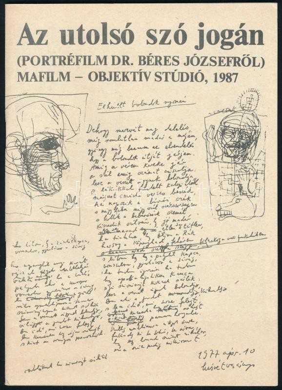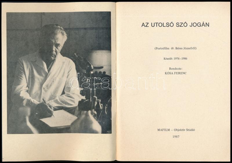 1987 Az utolsó szó jogán, Béres József Gyógyszerészről készített portr... https://www.darabanth.com/hu/427-Gyorsarveres/427.0/Mutargy-papirregiseg-egyeb/Nyomtatvanyok~1500003/1987-Az-utolso-szo-jogan-Beres-Jozsef-Gyogyszereszrol-keszitett-portrefilm-ismerteto-fC3~II2733780
