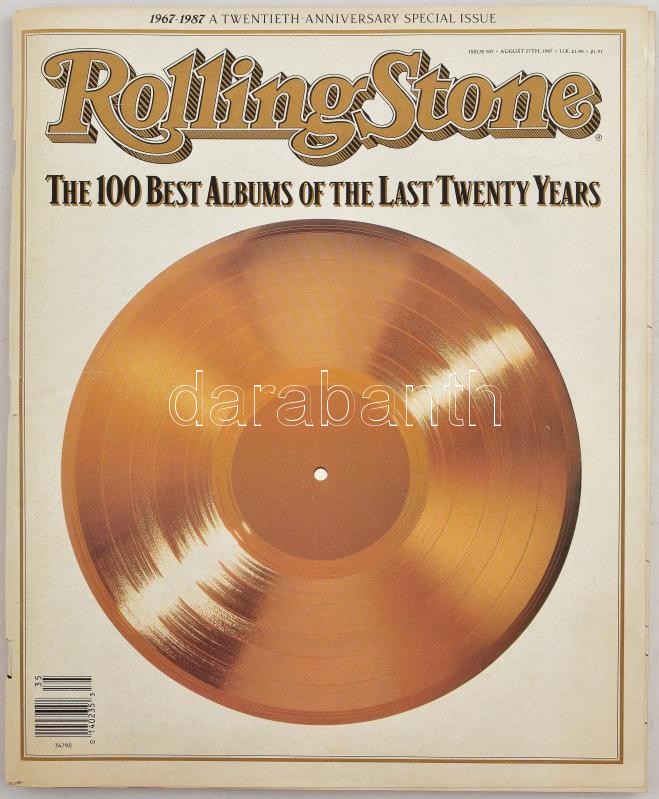1987 Rolling Stones magazine: August 27th 1987., The 100 best albums of the last twenty years. 1967-1987. A Twentieth anninversary special issue. A borítón kis szakadással.