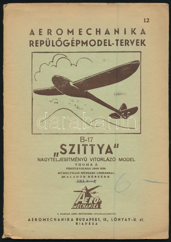 cca 1930 Aeromechanika repülőgép modell tervek. B-17 Szittya nagytelje... https://www.darabanth.com/hu/427-Gyorsarveres/427.0/Mutargy-papirregiseg-egyeb/Nyomtatvanyok~1500003/cca-1930-Aeromechanika-repulogep-modell-tervek-B-17-Szittya-nagyteljesitmenyu-vitorlazo-mod~II2725562