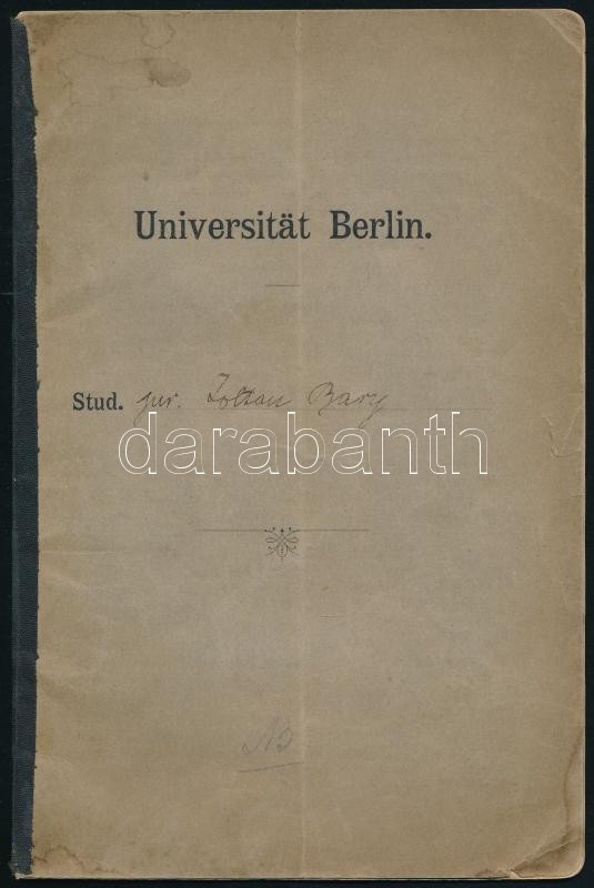 Leírás: 1912 Berlini Egyetem leckekönyve magyar személy részére