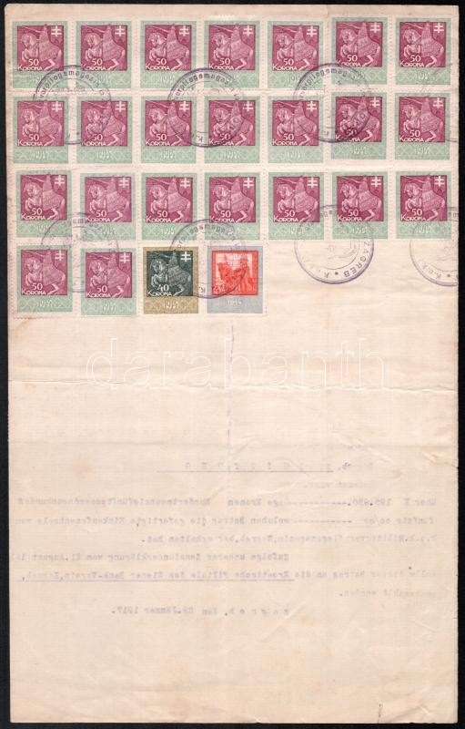 Leírás: Zágráb 1917 Katonai vonatkozású nyugta 195.950K összegről 2.944K értékű 60 db okmánybélyeggel. Látványos darab!