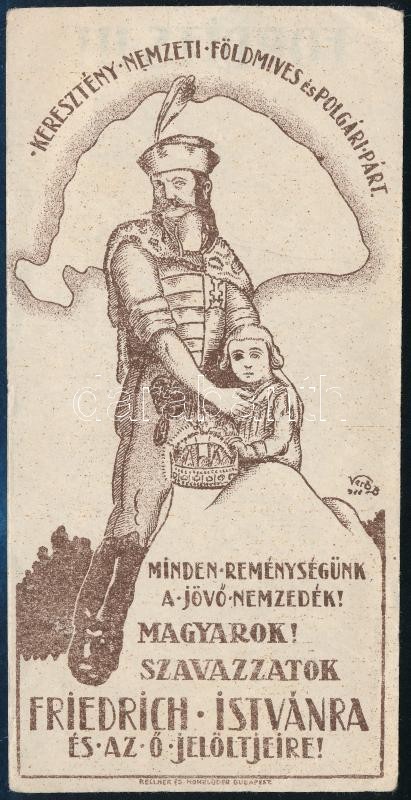 "Magyarok! Szavazzatok Friedrich Istvánra" számolócédula https://www.darabanth.com/hu/427-Gyorsarveres/427.0/Mutargy-papirregiseg-egyeb/Reklam~500023/Magyarok-Szavazzatok-Friedrich-Istvanra-szamolocedula~II2733137