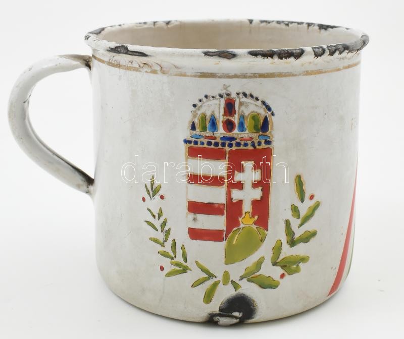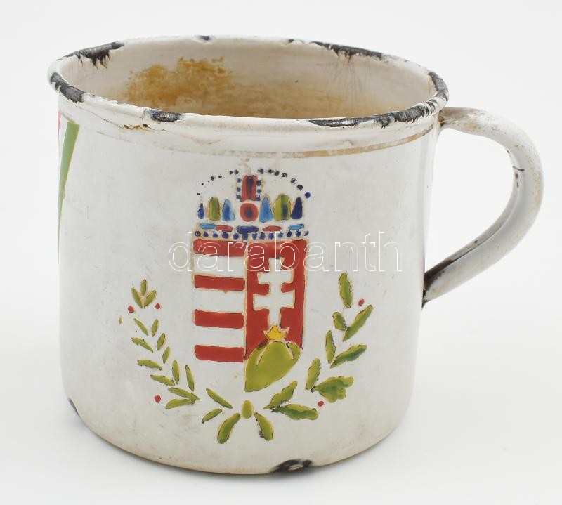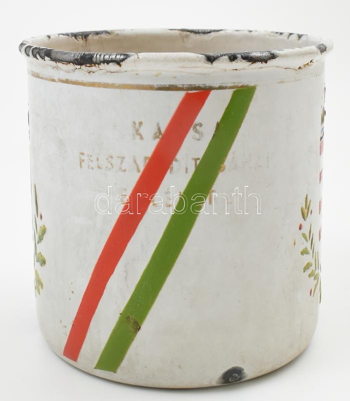 Leírás: 1938 "Kassa felszabadításának emlékére" Lampart fém bögre, kopásnyomokkal, zománchiányokkal, m: 8,5 cm