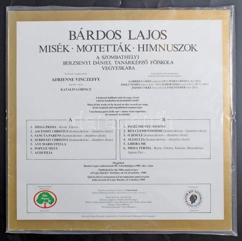 1989 Bárdos Lajos - Misék, motetták, himnuszok. A szombathelyi Berzsenyi Dániel Tanárképző Főiskola vegyeskara. Bakelit hanglemez, II. János Pál pápa ALÁÍRÁSÁVAL! Kiadói papírtokban.